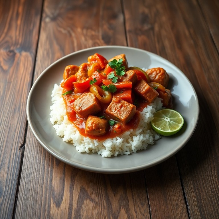 - Cerdo Estofado en Salsa de Tomate con Arroz a la Española