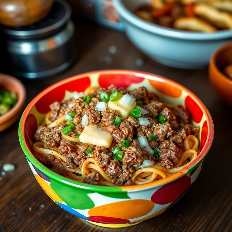 Salteado de Carne Molida con Fideos y Mantequilla