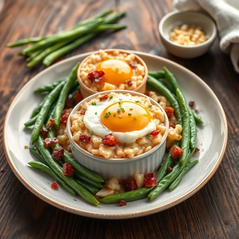 Oeuf Cocotte aux Lardons et Riz Crémeux