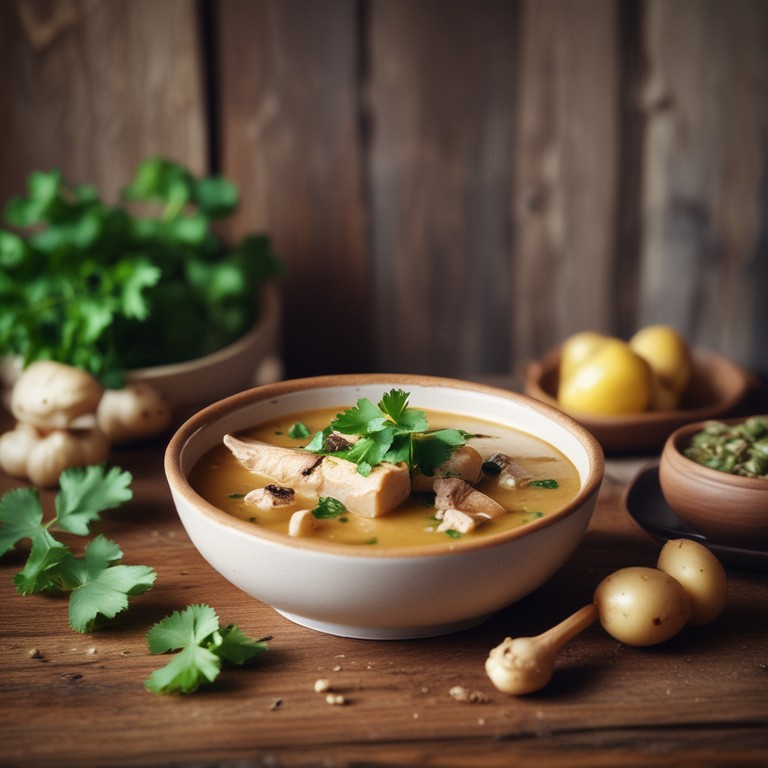Sopa de Huesos de Pollo con Cilantro y Patatas