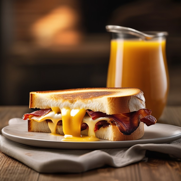 A deluxe grilled cheese sandwich with a southern twist, featuring an irresistible combination of smoky flavors and gooey cheese.