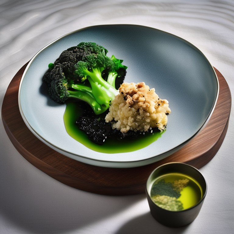 A unique and flavorful dish that combines the freshness of broccoli, the umami of Goma Wakame, and the exotic flavors of Caulerpa Racemosa and Spirulina. The addition of spiced taralli and a hint of gin creates a truly exceptional culinary experience.