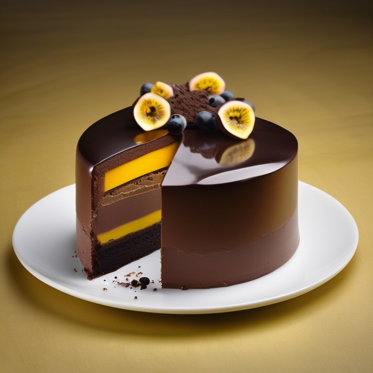 Indulge in the rich and velvety Dark Chocolate and Passion Fruit Mousse Cake. This decadent dessert combines the intense flavor of dark chocolate with the tropical tanginess of passion fruit. With a luscious chocolate cake base, creamy layers of dark chocolate mousse and tangy passion fruit mousse, this cake is a true delight for chocolate lovers.