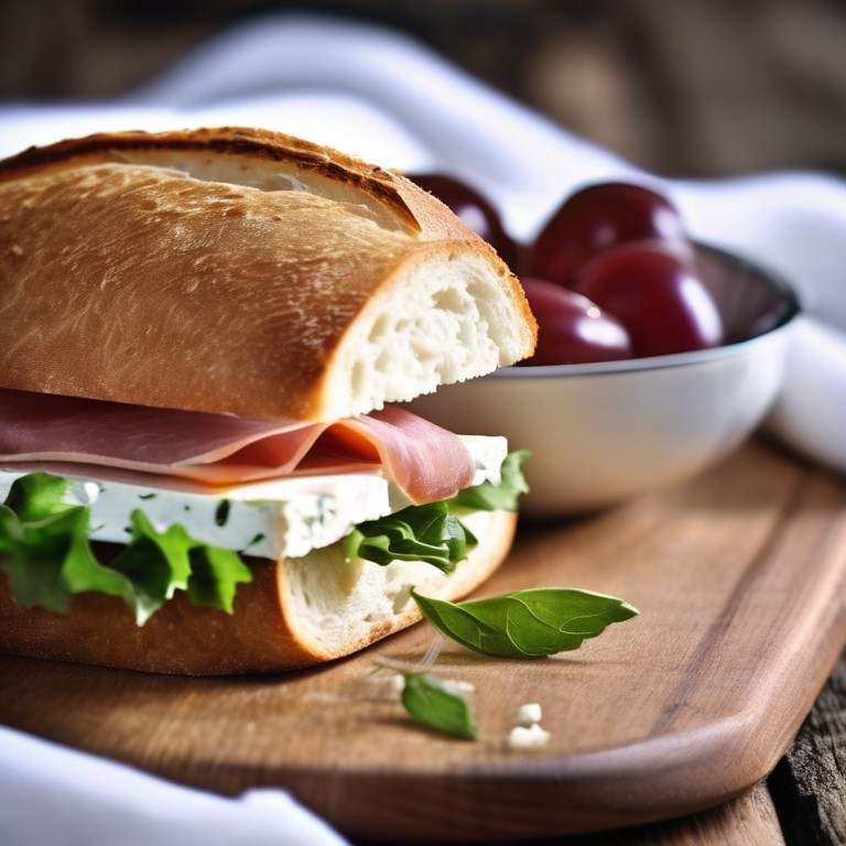 Ein köstliches Sandwich mit Leberkäse, Camembert und Feta