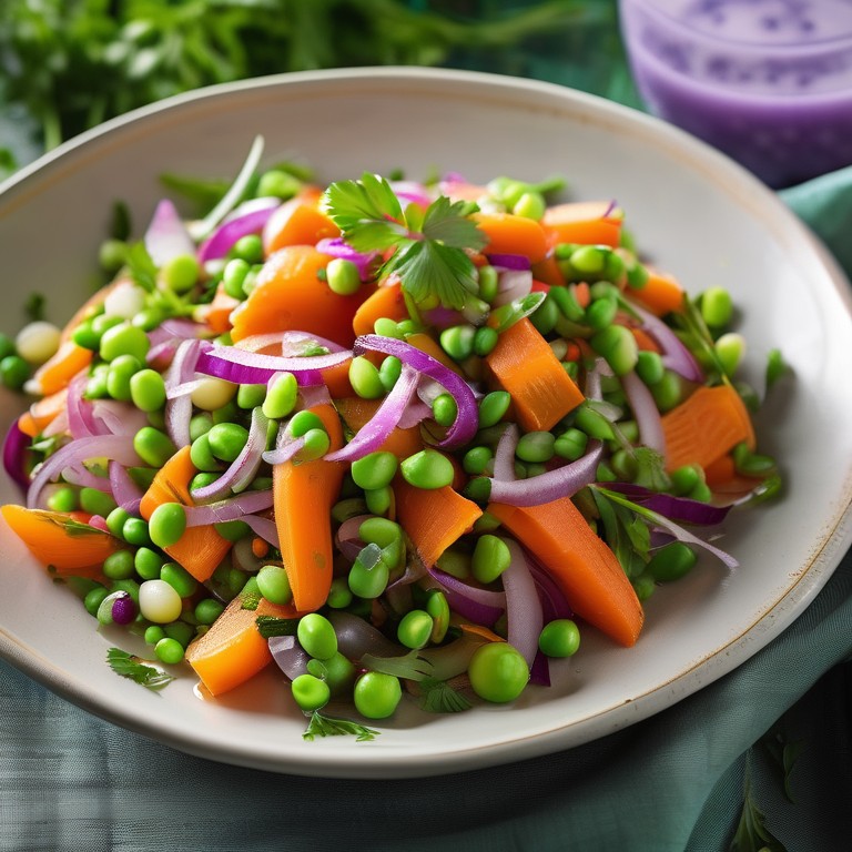 A refreshing and healthy salad made with carrots and peas, dressed in a light vegetable oil vinaigrette. This salad is perfect for a quick and nutritious side dish.