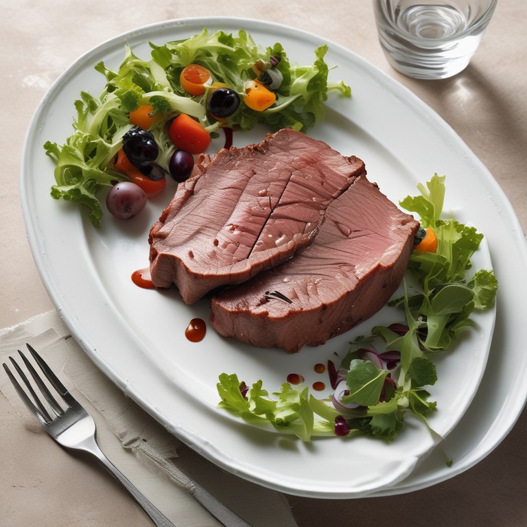 Ein köstliches Rindersteak-Gericht serviert mit einem erfrischenden Heidelbeer-Kresse-Salat.