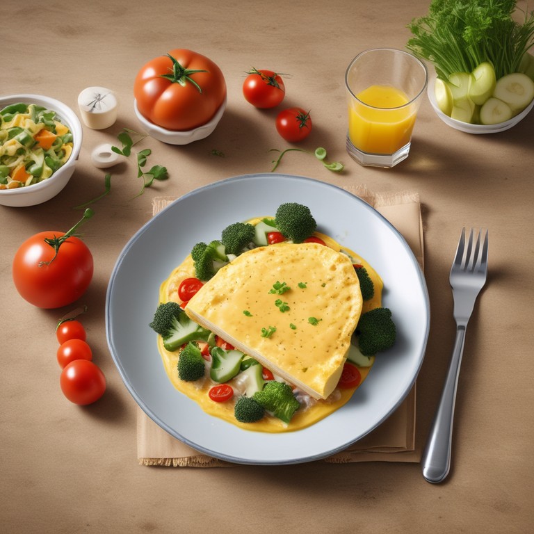 Вкусный и сытный омлет с разнообразными сырами и свежими овощами – идеальный завтрак или обед.