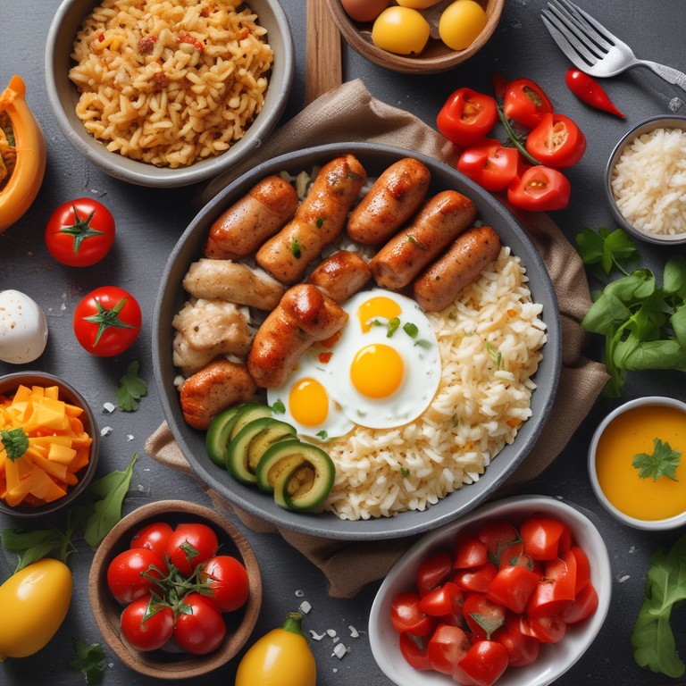 This savory chicken sausage egg rice bowl is a flavorful and satisfying meal that combines the richness of chicken sausages, the creaminess of scrambled eggs, and the fluffiness of white rice. The blend of spices adds a delicious depth of flavor, while the colorful bell peppers and onions provide a vibrant touch. This dish is perfect for a quick and hearty lunch or dinner option.