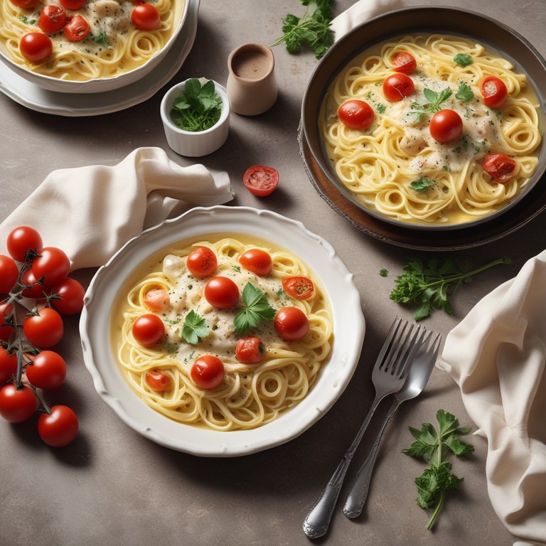 This recipe combines the richness of buttermilk with the sweetness of grape tomatoes and the savory flavor of chicken stock to create a creamy and flavorful spaghetti dish. The yellow onion adds a subtle depth of flavor to the sauce, making it a comforting and satisfying meal.