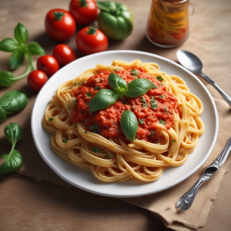 Une recette classique et simple de pâtes à la sauce tomate et basilic. Parfait pour un repas rapide et savoureux. Le mélange de tomates fraîches, d'ail parfumé et de basilic frais crée une sauce délicieuse qui se marie parfaitement avec les pâtes. Vous pouvez ajouter du parmesan râpé pour plus de saveur. Bon appétit!
