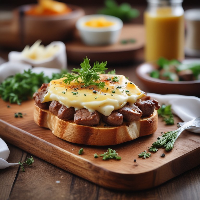 Knoblauch Fleischwurst Toast mit Käse und Kräutern