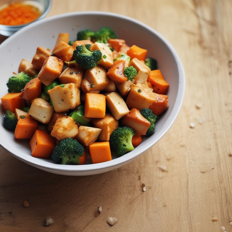 Este plato de pollo salteado con calabaza, zanahoria y brócoli es una opción saludable y deliciosa, perfecta para una comida rápida y nutritiva. La combinación de sabores y colores lo hace atractivo y sabroso.