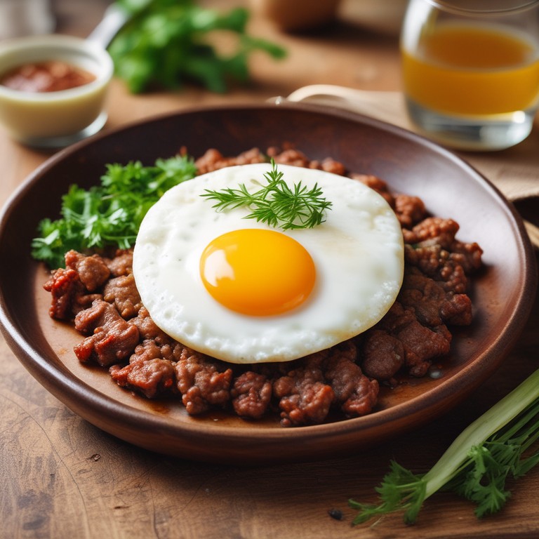 Uma deliciosa tapioca recheada com carne moída, queijo e um ovo frito, perfeita para um lanche ou refeição leve.