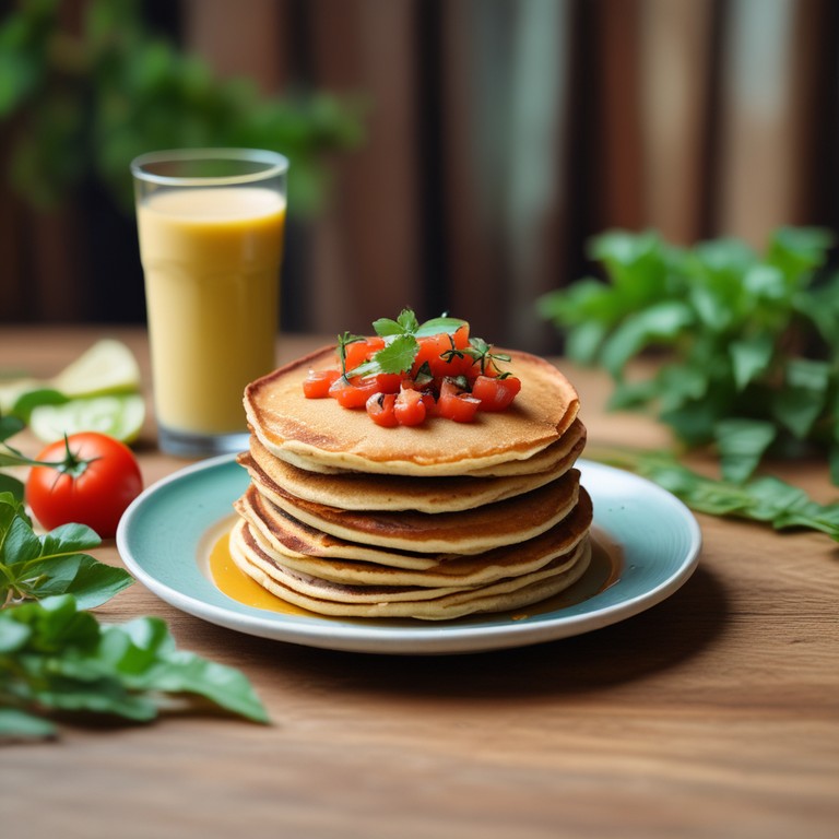 Savory Dosa Pancakes with Tomato-Onion Salsa and Banana Smoothie