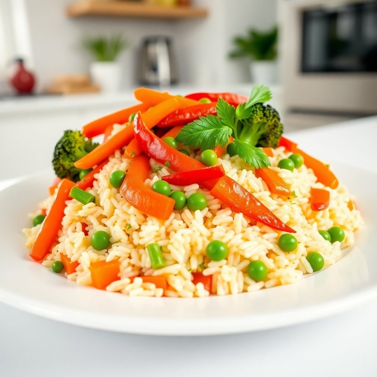 Arroz Hervido con Verduras al Vapor