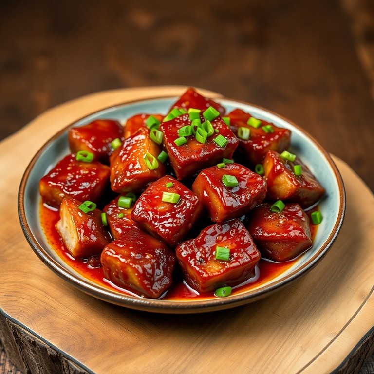 Tender pork belly with a spicy garlic kick, perfect for snacking.