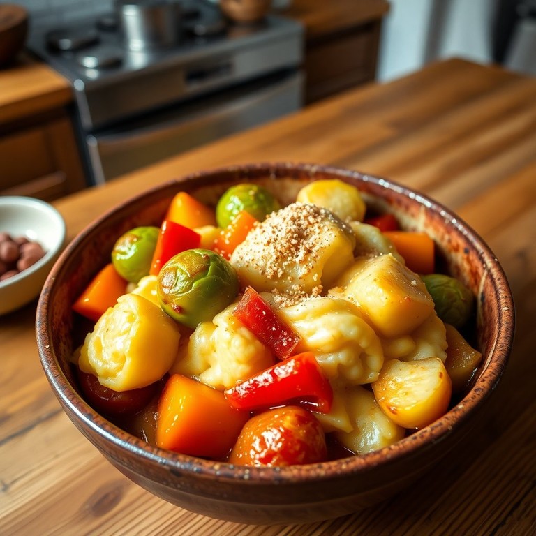Een traditionele stamppot met een kleurrijke twist van paprika, perfect voor een stevige maaltijd.
