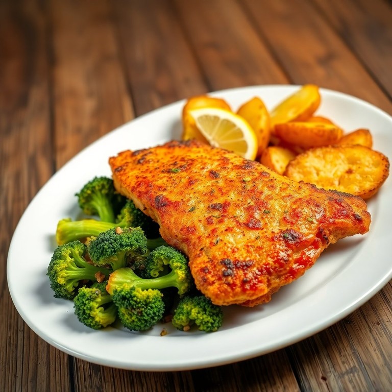 Milanesas de Pollo con Brócoli al Ajo y Papas Doradas