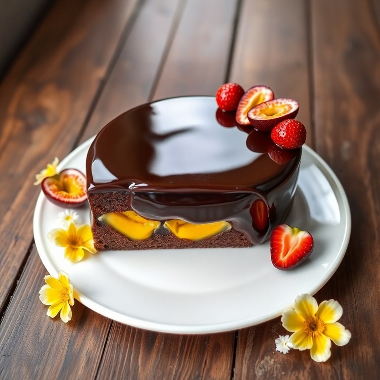 Torta de Chocolate y Maracuyá con Glaseado Espejo