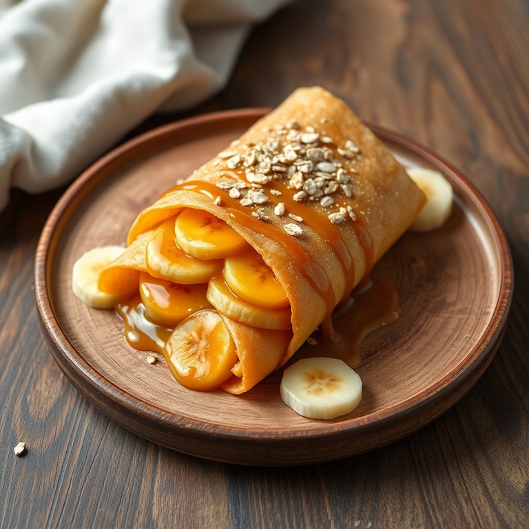 Wrap doce recheado com banana caramelizada, doce de leite light e um toque de aveia para crocância. Uma sobremesa rápida e satisfatória, ideal para matar a vontade de doce sem sair da dieta. Preparo em minutos na frigideira.