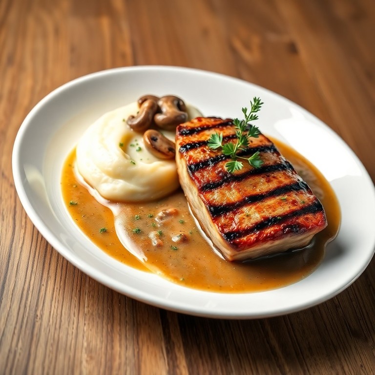 Escalope de Veau Grillée, Purée de Pommes de Terre et Champignons au Lait d'Amande