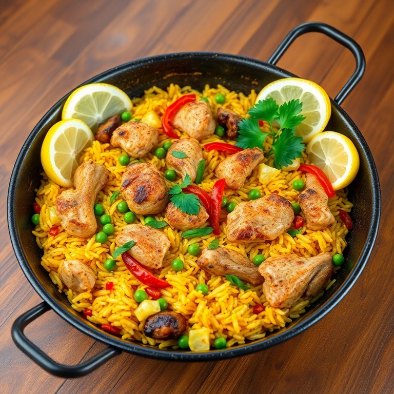 Una versión sencilla y reconfortante de la clásica paella, que combina arroz bomba con pollo dorado, cebolla, ajo y verduras frescas. Perfecta para una comida casera rápida y llena de sabor, esta paella rústica destaca por su textura cremosa y aromas intensos, ideal para compartir en familia.