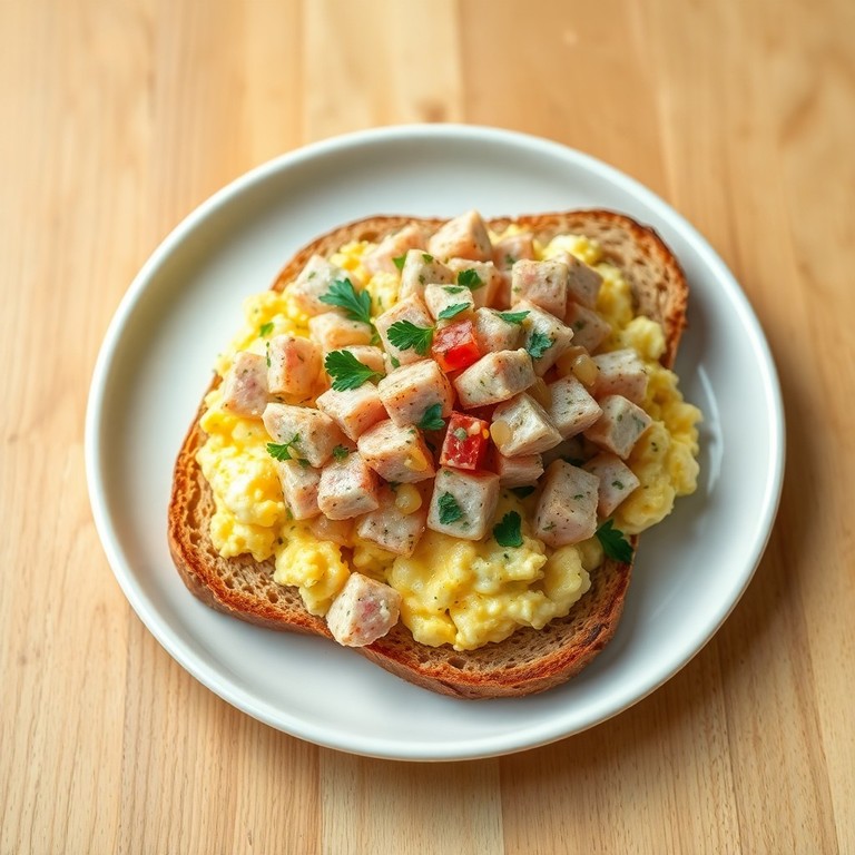 Una receta rápida y saludable que combina atún, huevo revuelto y pan integral tostado para un desayuno o comida ligera nutritiva y fácil de preparar.