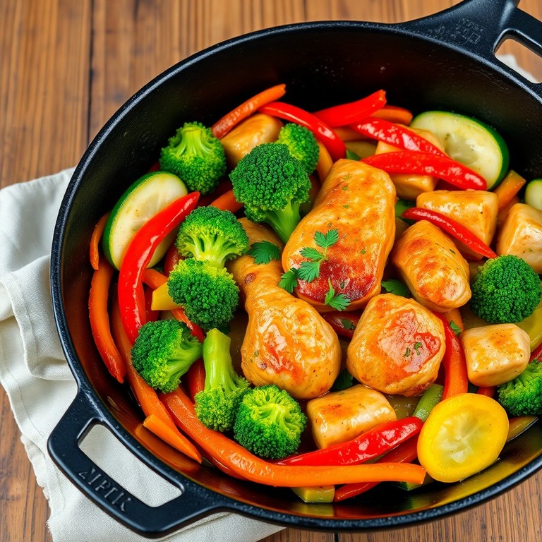 Diese proteinreiche und preiswerte Hähnchen-Gemüse-Pfanne ist perfekt für eine Low-Carb-Ernährung geeignet. Saftige Hähnchenbrustfilets werden mit buntem, frischem Gemüse kombiniert und schonend in der Pfanne gegart – ganz ohne Ei. Das Gericht ist schnell zubereitet, sättigend und bringt viel Geschmack auf den Teller.