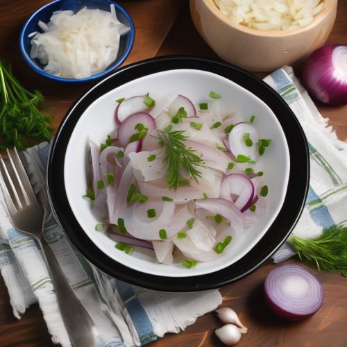 A traditional Russian salad made with pickled herring, onions, garlic, and fresh herbs.
