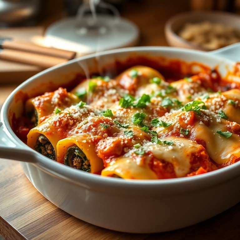 - Gefüllte Cannelloni mit Hackfleisch, Spinat und Käse überbacken
