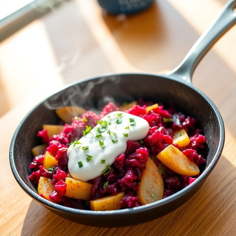 - Nordische Rote Bete-Kartoffel-Apfel-Pfanne mit cremigem Dill-Dressing