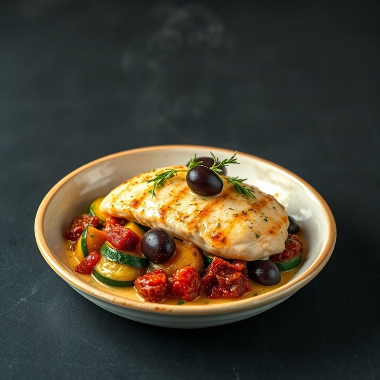 - Mediterranes Hähnchen mit Oliven und geschmorten Zucchini