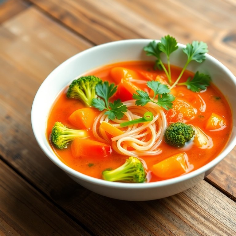 Vegetarische Tomaten-Kokos-Suppe mit Glasnudeln