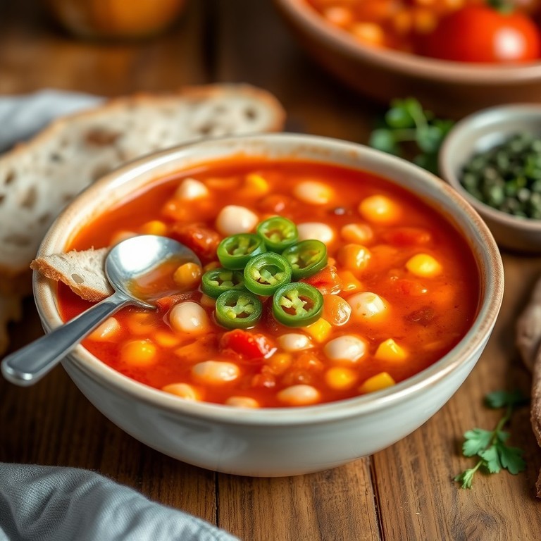 Würzige Bohnen-Tomatensuppe mit Pfefferoni
