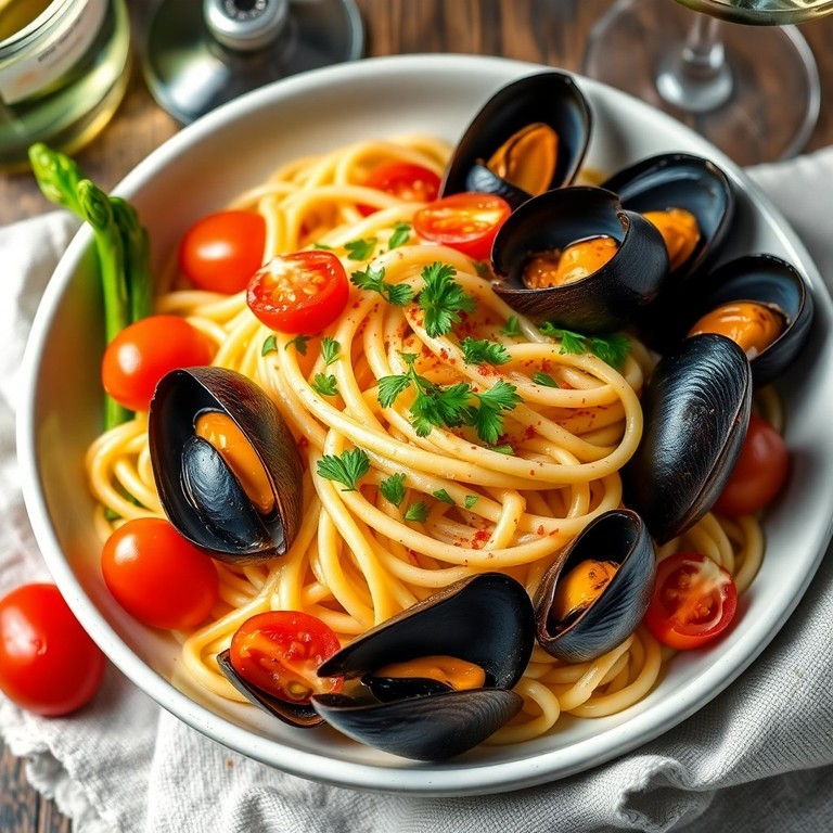Linguines aux Moules et Asperges Vertes à la Provençale