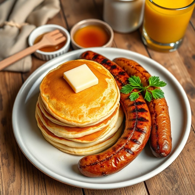Panquecas de Leite e Farinha com Salsicha Grelhada