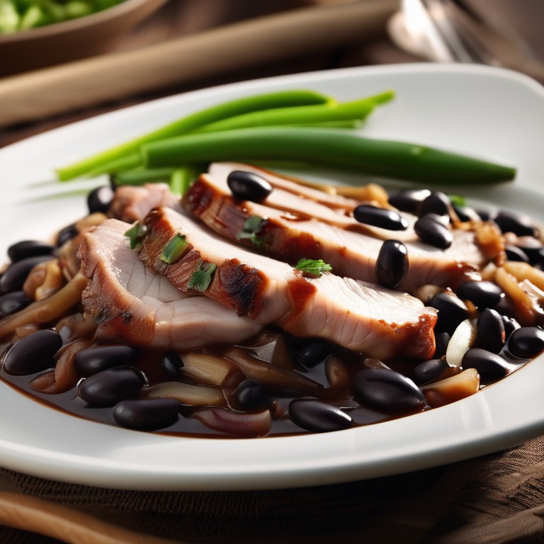- Schweinegeschnetzeltes mit schwarzen Bohnen und Zwiebeln