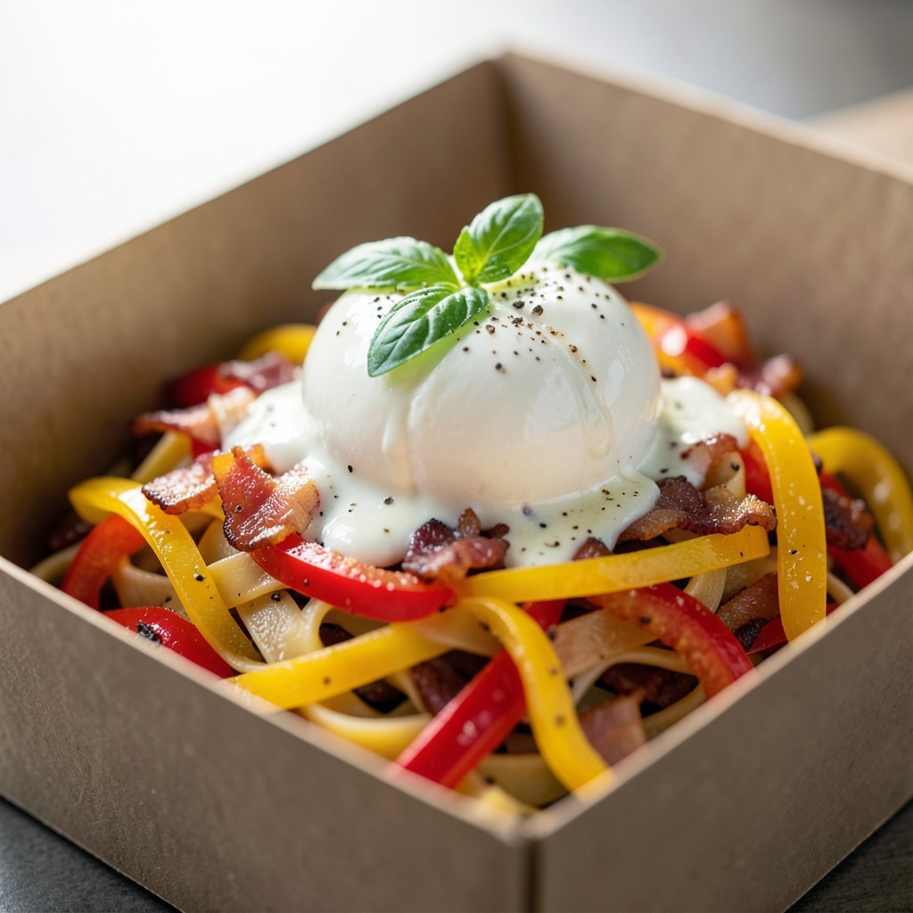 - Pasta Box Express : Poivrons, Lard et Cœur de Burrata
