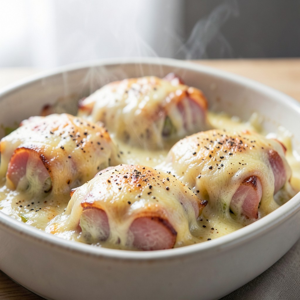- Gratin de poireaux à la béchamel et éclats de jambon