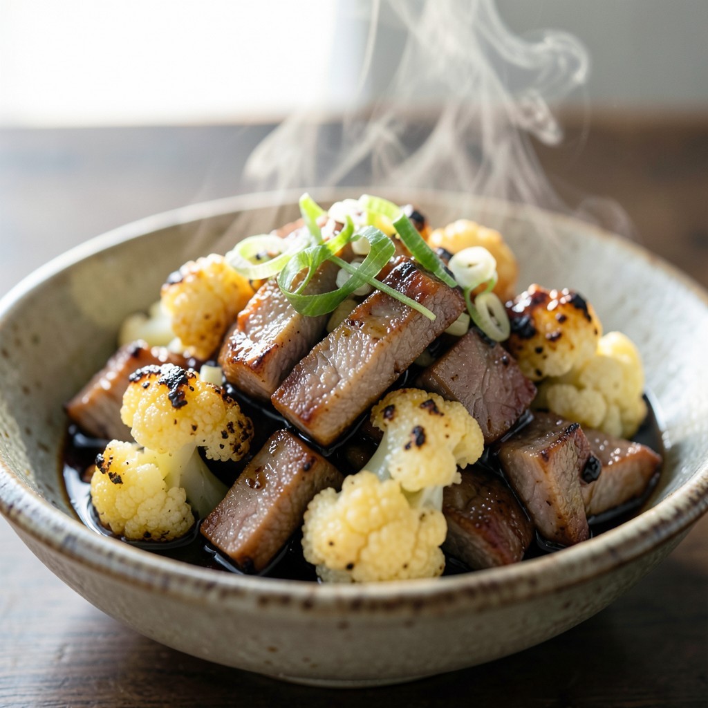 - Bouchées de porc caramélisées au gingembre et chou-fleur rôti