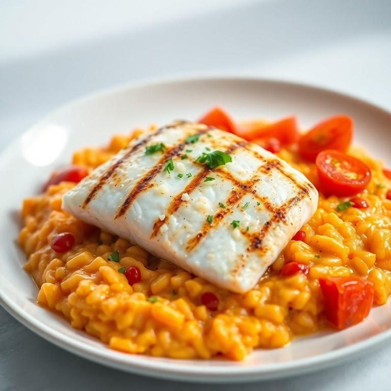 Risoto Cremoso de Cenoura e Tomate com Filé de Peixe Grelhado