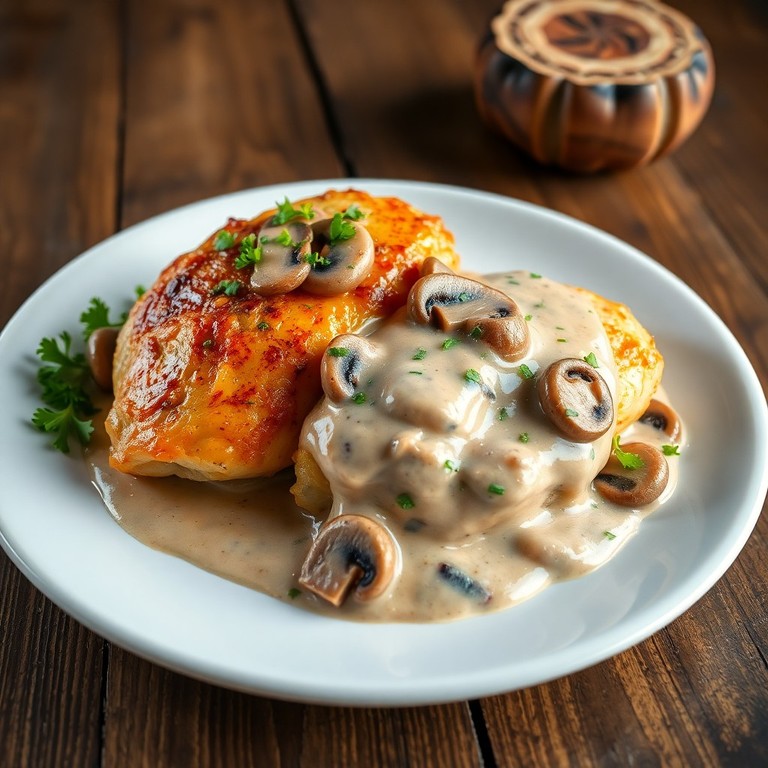 Frango à Milanesa com Molho Cremoso de Cogumelos