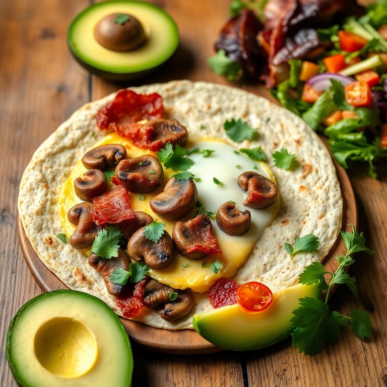 Tortilla Keto de Huevos, Champiñones y Crujiente de Tocino