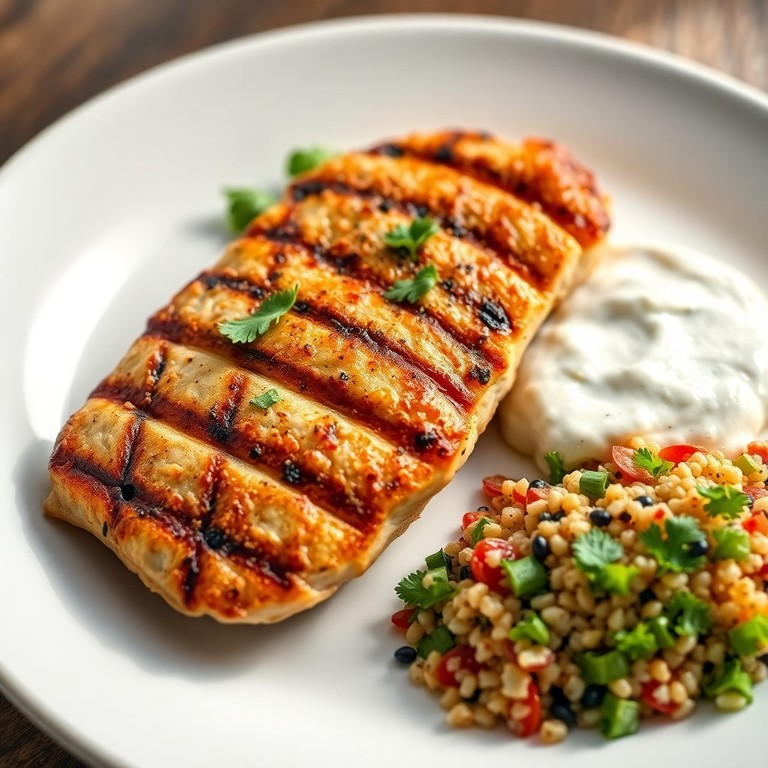 - Gegrilltes Hähnchen mit Quinoa-Salat und cremiger Knoblauchsauce