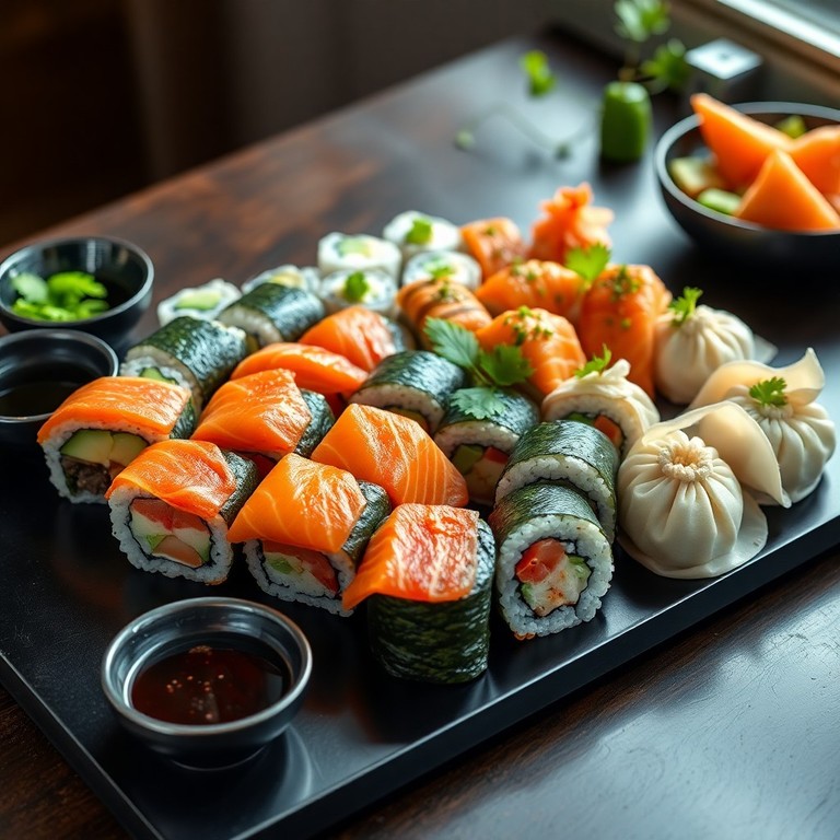 - Asiatischer Sushi- und Dim Sum-Teller