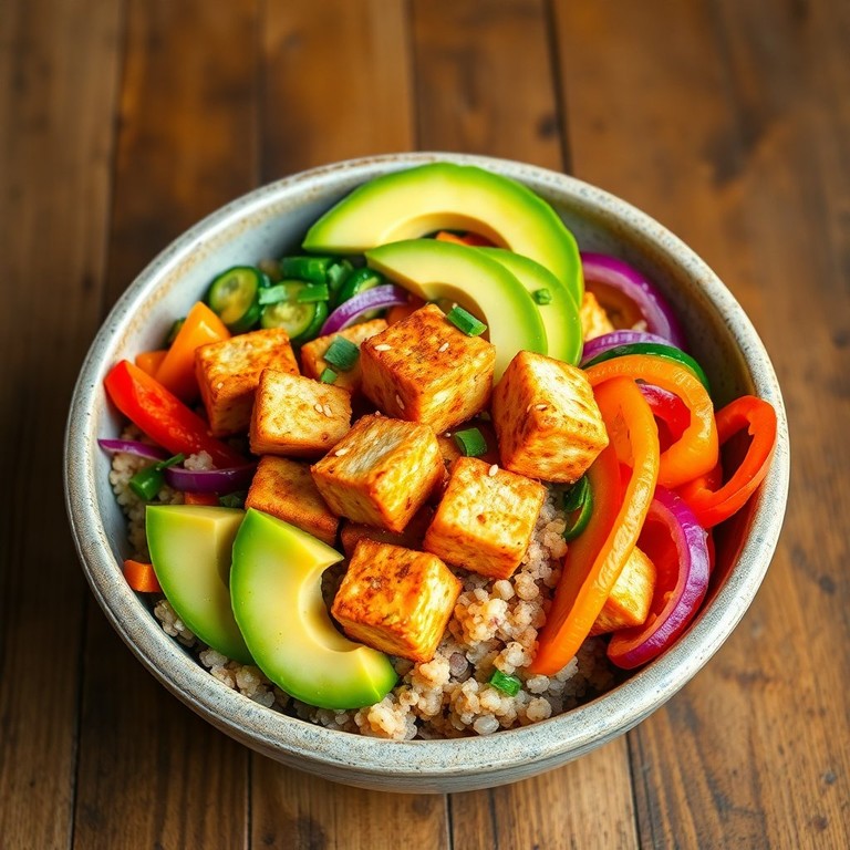 Quinoa-Bowl mit gebratenem Tofu und buntem Gemüse