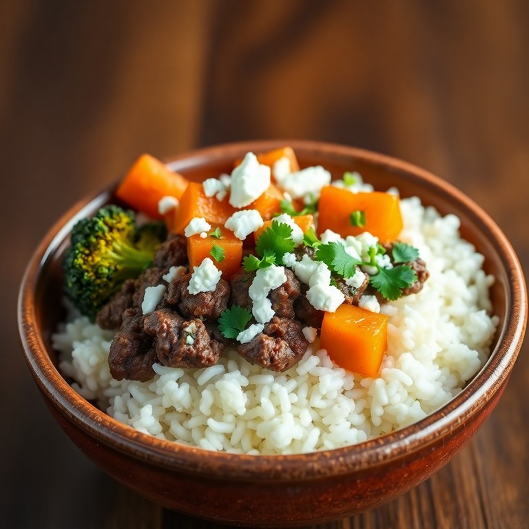 Mediterranean Spiced Beef and Roasted Vegetable Rice Bowl