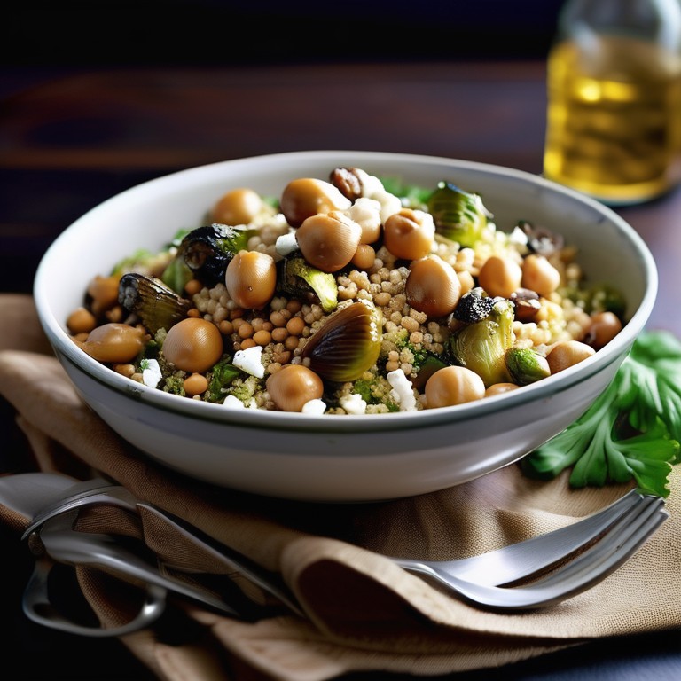 Mediterranean Couscous Salad with Roasted Oyster Mushrooms, Chickpeas, and Brussel Sprouts