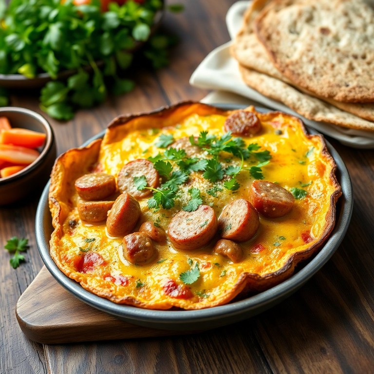 Tortilla de Huevos con Salchicha y Pollo