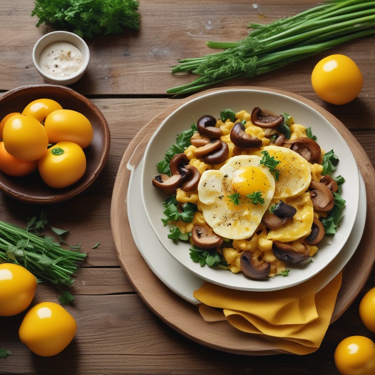 - Eier mit Champignons und buntem Paprika